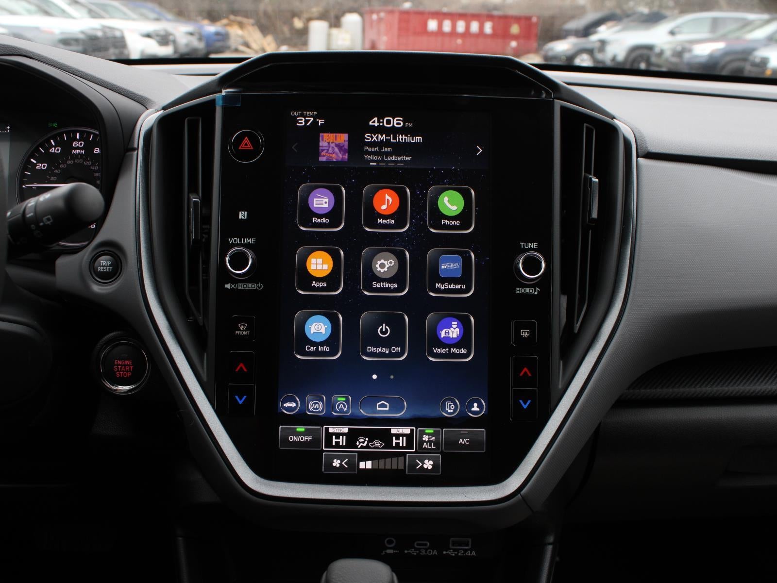 - Radio: Subaru 11.6" Multimedia Plus System -inc: AM/FM stereo, HD Radio, multi-touch gesture high resolution display screen, voice activated controls, Bluetooth® audio streaming and hands-free phone connectivity, Bluetooth® hands-free SMS text messaging connectivity, iPod control capability, smartphone integration: wired and wireless Android Auto w/full screen view and wireless Apple CarPlay w/full screen view, USB and Over The Air (OTA) audio system update, steering wheel audio system and Bluetooth® control switches, 6 speakers (2 dash panel tweeter, 2 front door and 2 rear door), illuminated 3.5mm auxiliary input jack, illuminated front USB A and C input/charge ports, connected services operation indicator, SOS emergency assistance: red SOS button and enhanced roadside assistance: blue i-button
