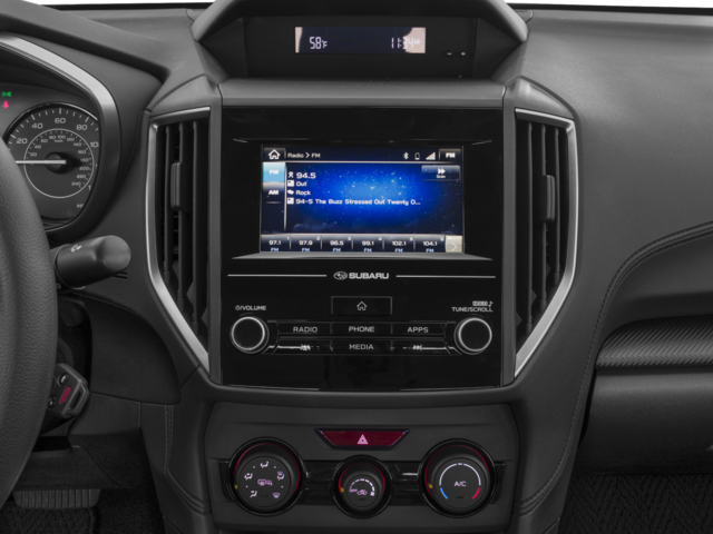 - Radio: Subaru Starlink 6.5" Multimedia System -inc: AM/FM stereo, multi touch gesture high resolution 6.5" LCD display screen, Bluetooth® audio streaming connectivity, Bluetooth® hands-free phone connectivity, iPod control capability, rear vision camera, smartphone integration, AHA, Android Auto, CarPlay, Pandora, USB port, 3.5mm auxiliary input jack, 4 speakers and off delay operation StarLink enrollment cannot be applicable to Fleet Management Companies (FMCs) or to Commercial fleet accounts at this time.