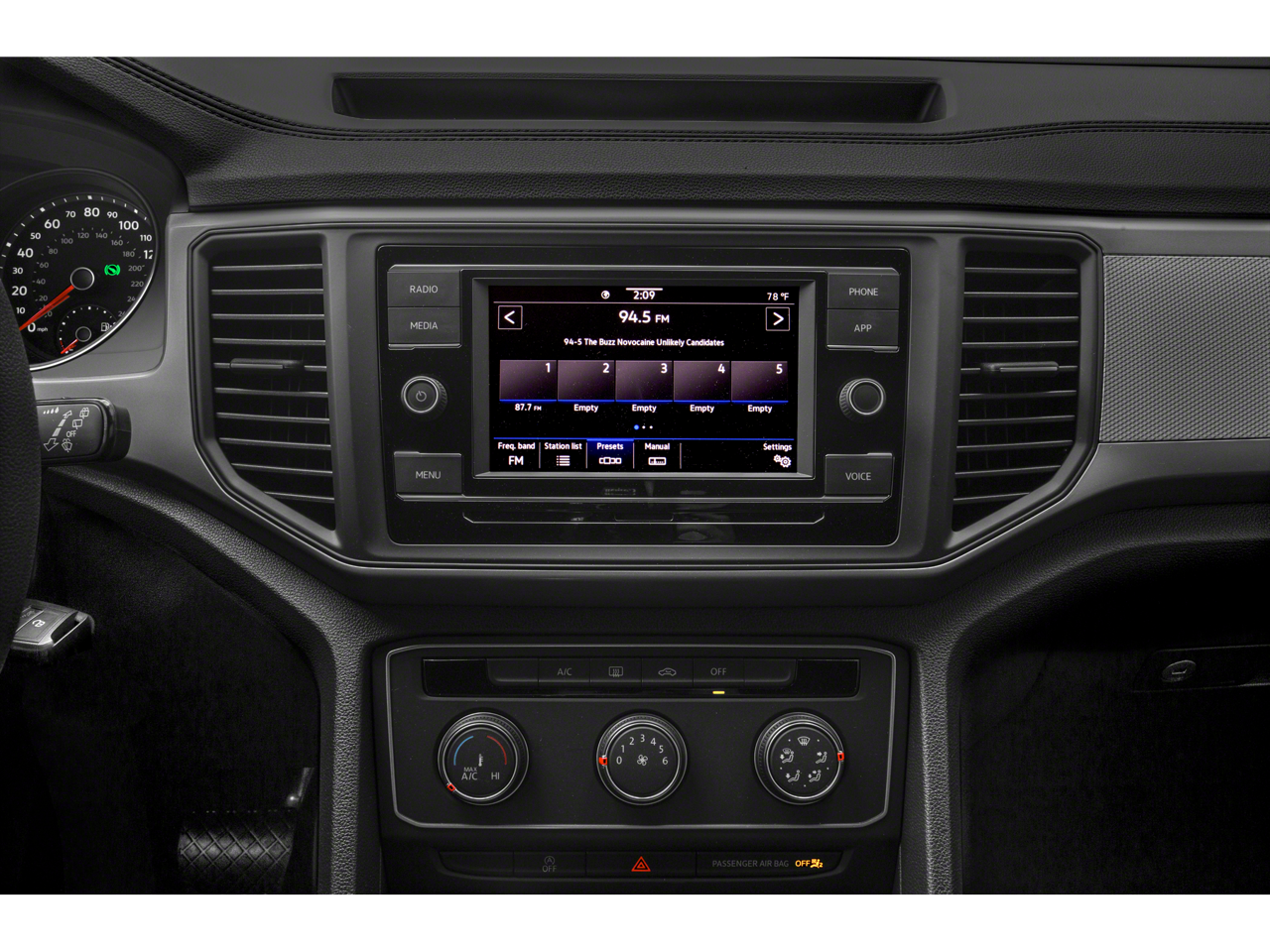 - Radio: Composition Media w/8.0" Touchscreen -inc: AM/FM/HD Radio, WMA/MP3/FLAC/CD player w/USB input, voice control, capability for in-vehicle 4G LTE enabled Wi-Fi (cellular data plan required; includes limited trial), capability for VW Car-Net services (capabilities for certain services vary; requires enrollment or subscription), 6-speaker sound system, Bluetooth® connectivity (for compatible devices), SiriusXM satellite radio (w/limited-time trial subscription) and VW App-Connect smartphone integration and interface (w/Apple CarPlay, Android Auto and MirrorLink)