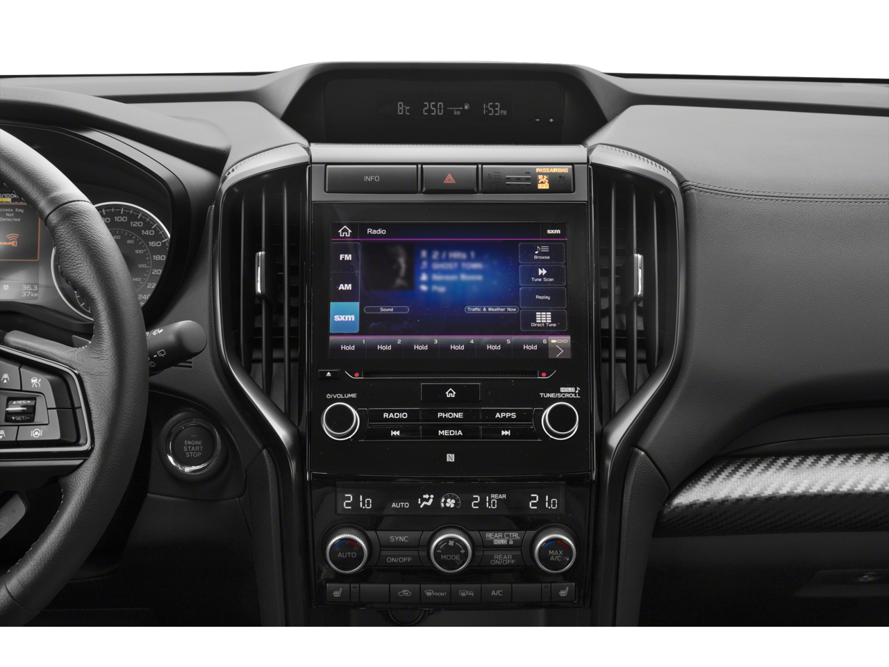 - Radio: Subaru STARLINK 8.0" Multimedia Plus System -inc: AM/FM stereo HD Radio w/single disc CD player, MP3/WMA/CRR/RW file capability, multi-touch gesture high resolution display screen, voice activated controls, Bluetooth® audio streaming and hands-free phone connectivity (refer to subaru.com for cell phone compatibility), Bluetooth® hands-free SMS text messaging connectivity (refer to subaru.com for cell phone compatibility), Near Field Communication (NFC), iPod control capability, SiriusXM All Access radio (4 months free trial/subscription required after), SiriusXM Travel Link (4 months free trial/subscription required after), smartphone integration for Aha, Android Auto, Apple CarPlay, Pandora and STARLINK cloud applications, USB and Over The Air (OTA) audio system update, steering wheel controls for audio and Bluetooth®, 6 speakers, 3.5mm auxiliary input jack and front and rear dual USB ports