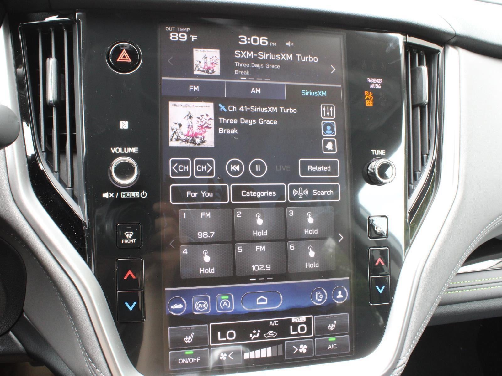 - Radio: Subaru 11.6" Multimedia Plus System -inc: AM/FM stereo, HD Radio, valet mode, multi-touch gesture high resolution display screen, voice activated controls, Bluetooth® audio streaming and hands-free phone connectivity w/SMS text messaging (refer to subaru.com for cell phone compatibility), Near Field Communication (NFC), iPod control capability, SiriusXM w/360L (4 months free trial/subscription required after), SiriusXM Travel Link (3 years free trial/subscription required after), smartphone integration for Android Auto and Apple CarPlay w/full screen view and wireless connection, USB and Over The Air (OTA) audio system update, audio system and Bluetooth® steering wheel control switches, 576 watt harman/kardon surround sound system w/12 speakers, illuminated 3.5mm auxiliary input jack and illuminated USB-A and USB-C input/charge ports