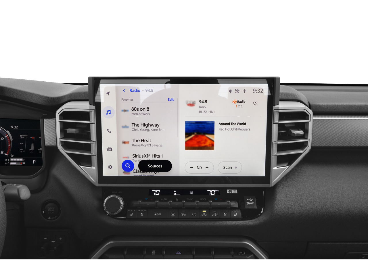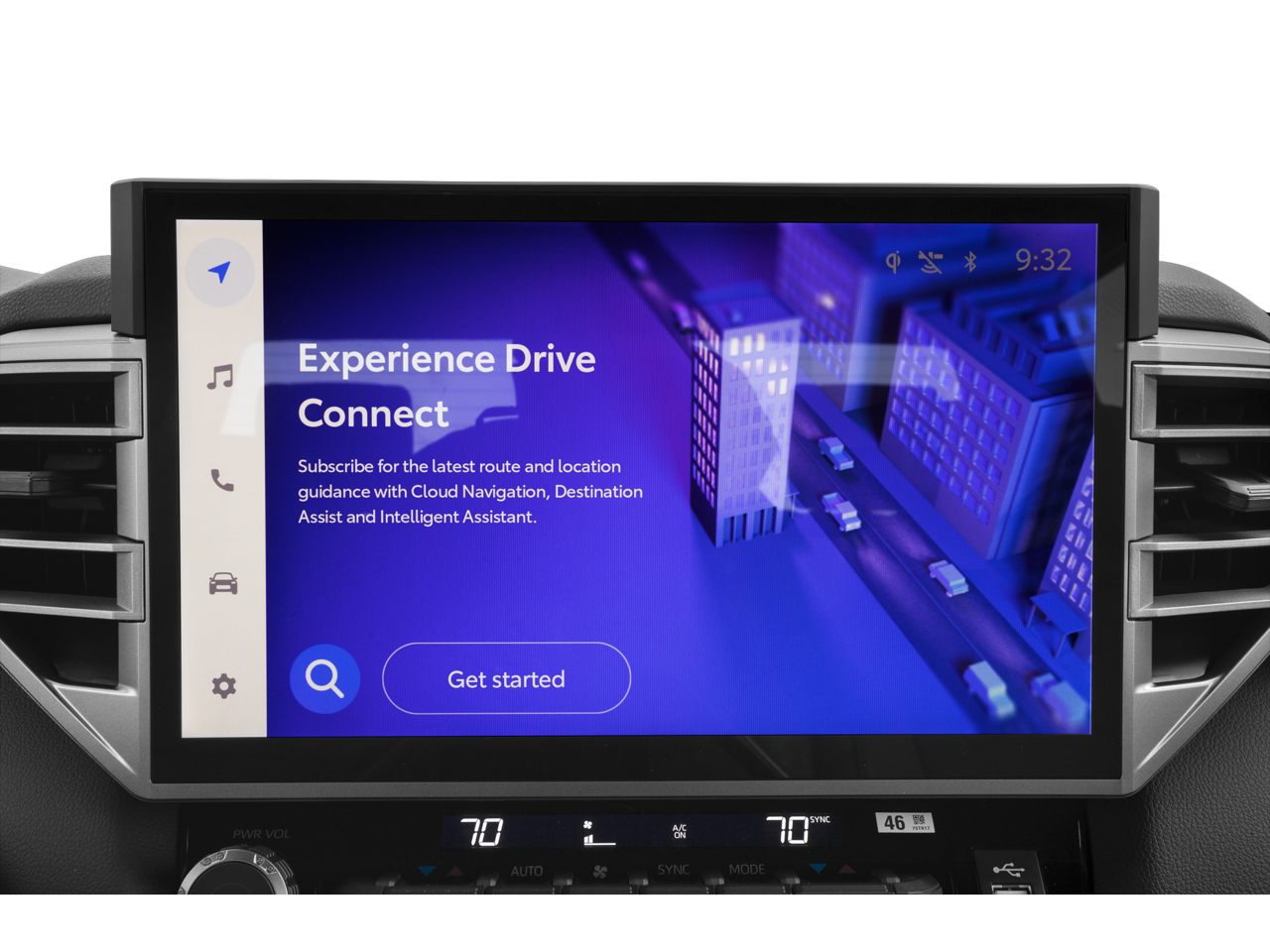 - Radio: Audio Plus -inc: 14-inch touchscreen, 9 speakers, Android Auto and Apple CarPlay compatible and SiriusXM w/3-month platinum plan trial subscription, See toyota.com/audio-multimedia for details, Connected services - Safety Connect w/up to 10-year trial, Remote Connect w/1-year trial, Drive Connect w/1-year trial, Service Connect w/up to 10-year trial, Wi-Fi Connect w/up to 3 GB within 1-month trial, See toyota.com/connected-services for details